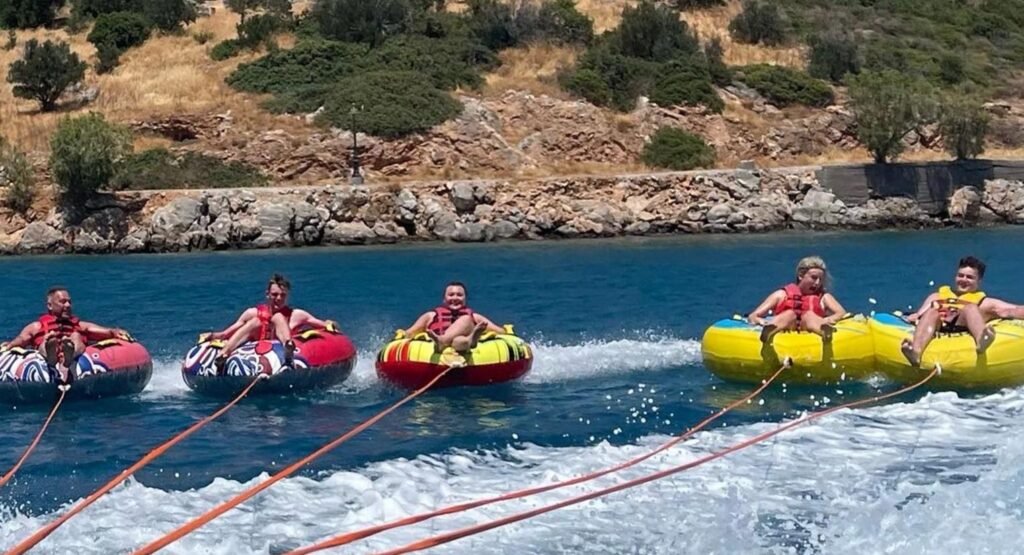 The vibrant colors, dynamic shapes, and the sheer excitement of bouncing, sliding, and splashing create an atmosphere of pure joy on water! Inflatable games also recommended for guests who prefer to stay afloat while gazing in the sun or to admire the surrounding scenery of Agia Paraskevi beach.